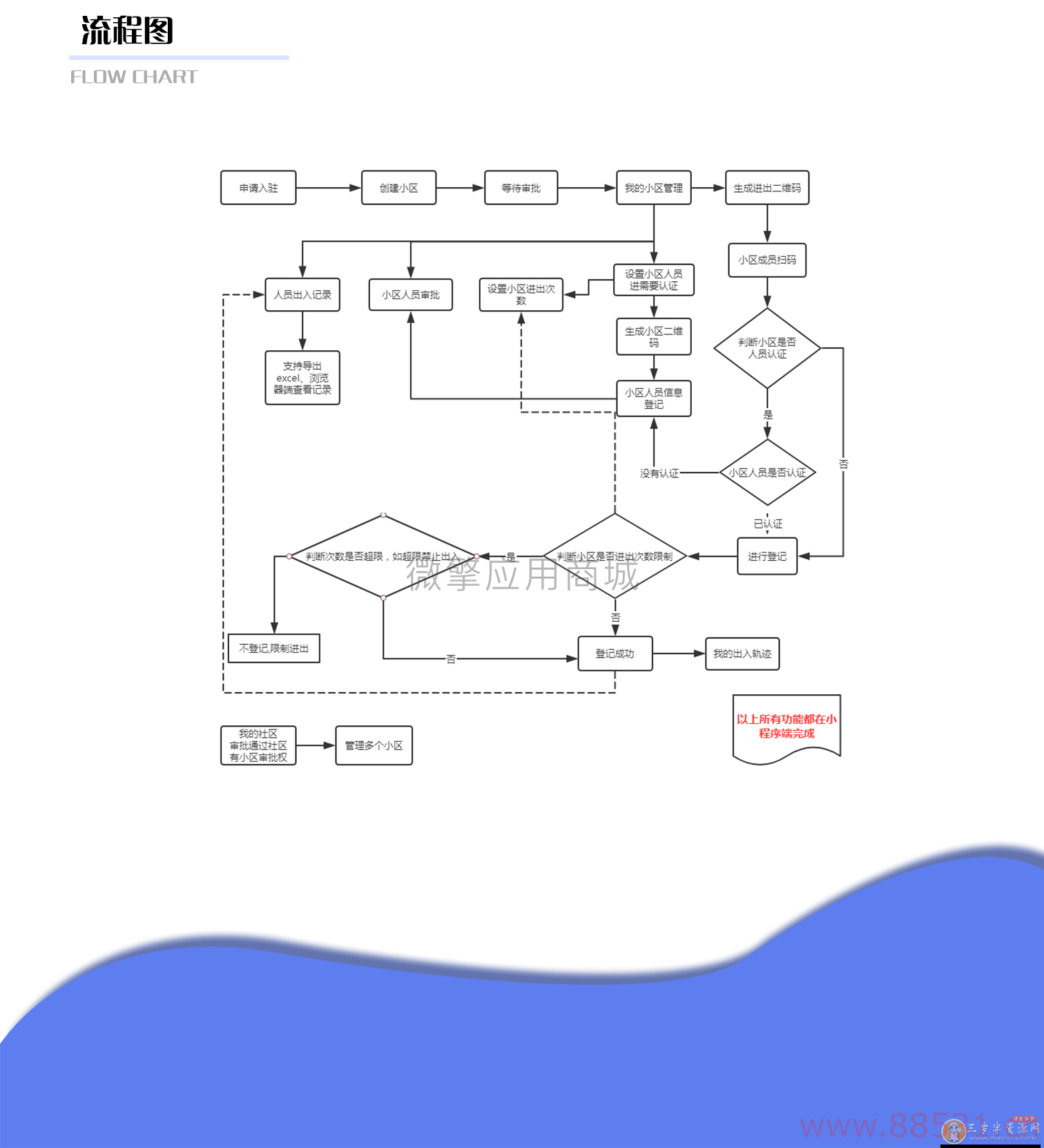 注册:负责登记人员从“我要使用”注册,提交至社区审核小区,设置里下载二维码,张贴于出入口。