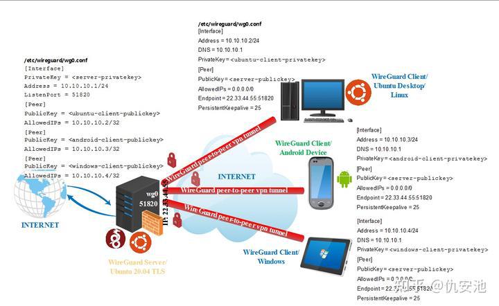 本文不讨论具体的wireguard原理,但是我会尽可能详细地介绍配置的作用。