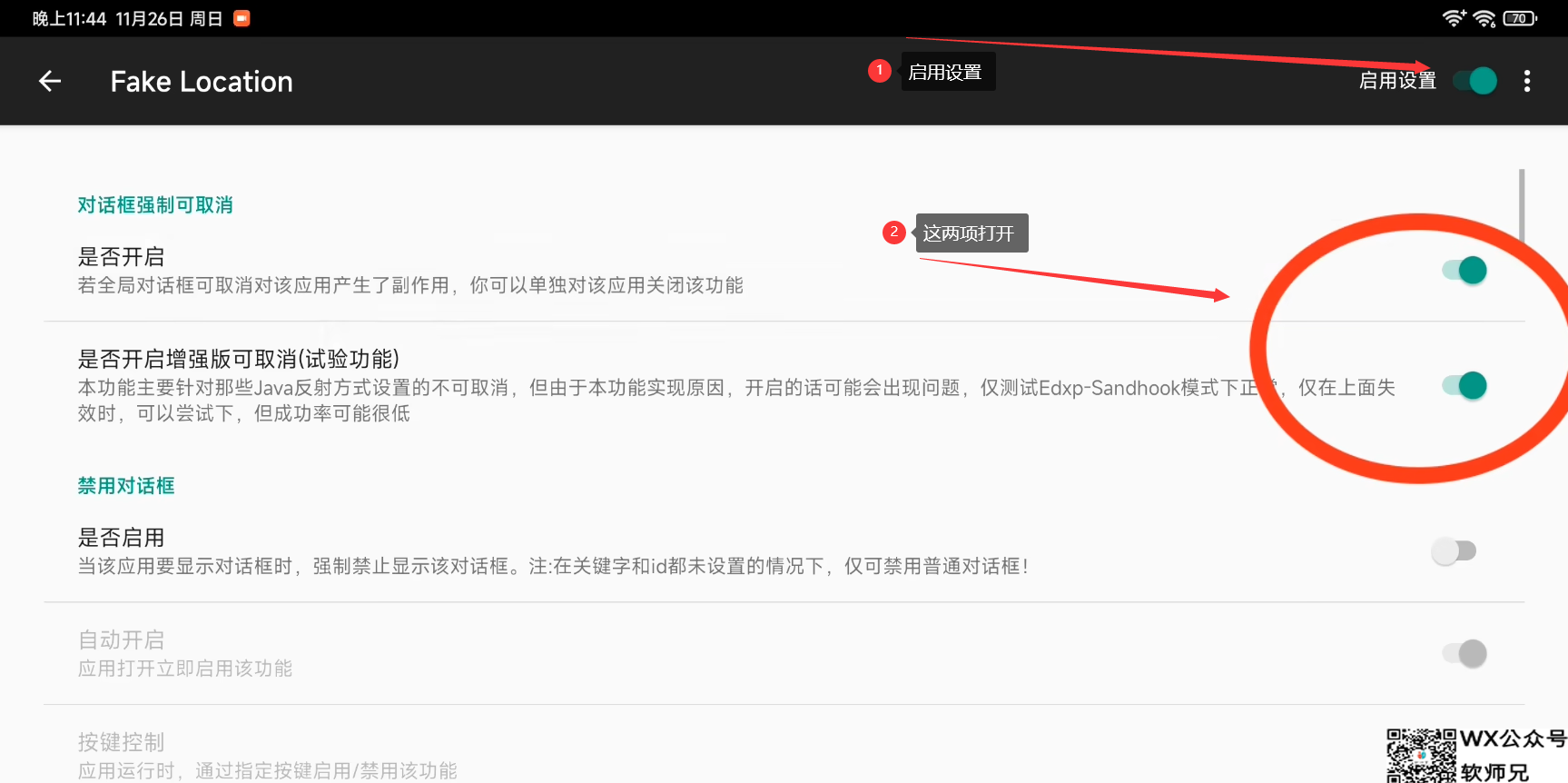 以下设置是为了我们使用破解版 Fake Location 时能忽略运行时的强制更新弹窗,并能使用高级功能。