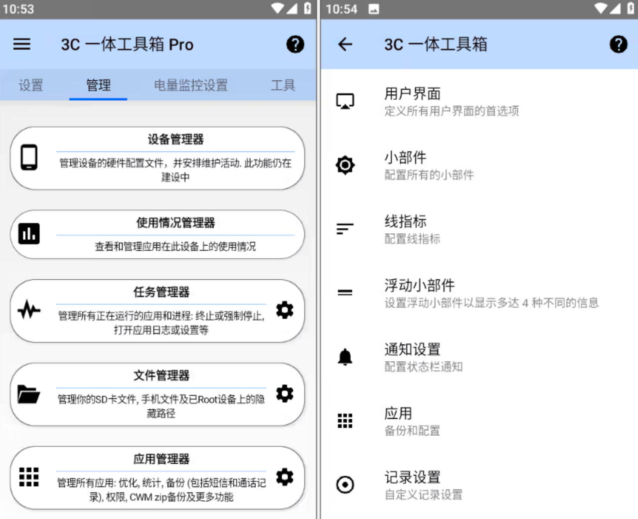 3C All-in-One Toolbox(3C 一体式工具箱)将多种功能集成于一个强大且易于使用的工具箱中,提供现代化的界面设计,帮助您轻松监控、控制和优化 Android 设备的各项设置。无论是设备性能管理、应用控制,还是系统调优,3C 一体式工具箱都能为您提供所需的全套工具,助您更高效地管理您的 Android 设备,提升使用体验。