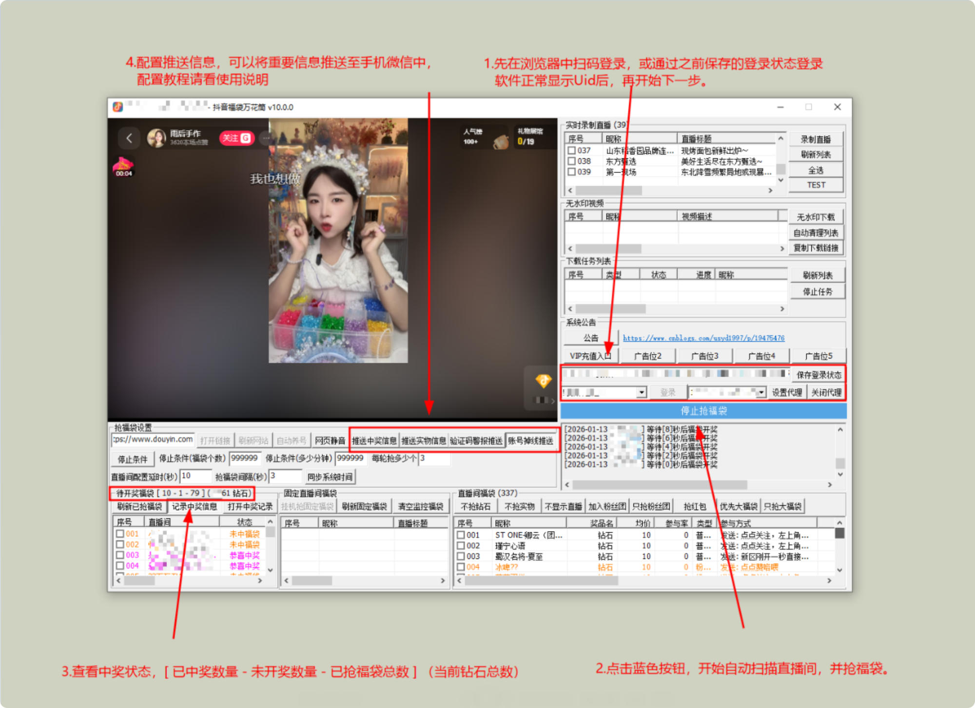 这是一款会赚钱的神器,静静的就能把零花钱赚了,使用非常简单,小白也能快速上手,功能还包含了一些其他小功能,抖音无水印视频下载器,抖音直播间录制下载器,抖音批量取消关注取关器- ..