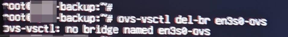 根据看到的网卡信息,直接把对应的OVS虚拟网卡删除掉即可,比如我这台NAS上看到的OVS虚拟交换机网卡名称为“en3s0-ovs”,那么删除这个OVS虚拟交换机网卡命令就是